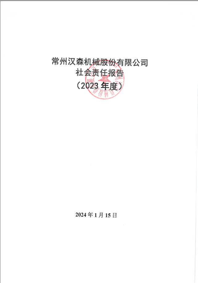 常州漢森機(jī)械股份有限公司社會(huì)責(zé)任報(bào)告